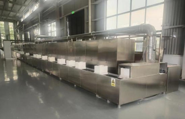 微波推板窯的能量利用率高、燒成周期短、生產(chǎn)效率高、產(chǎn)品受熱均勻、最高溫度可以達(dá)到 1800℃,優(yōu)點(diǎn)包括工藝調(diào)節(jié)靈活、自動(dòng)化程度高、操作性強(qiáng)、使用方便、無環(huán)境污染、安全可靠、設(shè)備占地面積小等。